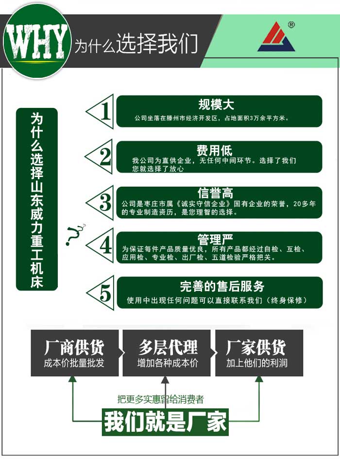 山東威力重工用心服務(wù)、品質(zhì)至上、交貨準(zhǔn)時、價格合理一直是我們堅持的經(jīng)營理念,同樣的質(zhì)量,我們的價格便宜;同樣的價格,我們的質(zhì)量更好。100噸龍門液壓機(jī)從零部件直到產(chǎn)品出廠,都逐一經(jīng)過嚴(yán)格的控制和檢驗,雄厚的經(jīng)濟(jì)實力,先進(jìn)的技術(shù)設(shè)備,完善的檢測手段,務(wù)實的工作作風(fēng),以及優(yōu)秀的全程管理,構(gòu)筑了山東威力重工機(jī)床有限公司的優(yōu)良品質(zhì)和信譽(yù)。除此以外,公司還致力于銑床、鉆床、沖床、刨床、鋸床、液壓機(jī)、剪板機(jī)、折彎機(jī)、數(shù)控車床、加工中心等重型機(jī)床設(shè)備生產(chǎn)與研發(fā),獲得多次榮譽(yù)稱號。定做訂購63噸龍門液壓機(jī)歡迎到我公司實地考察選購。